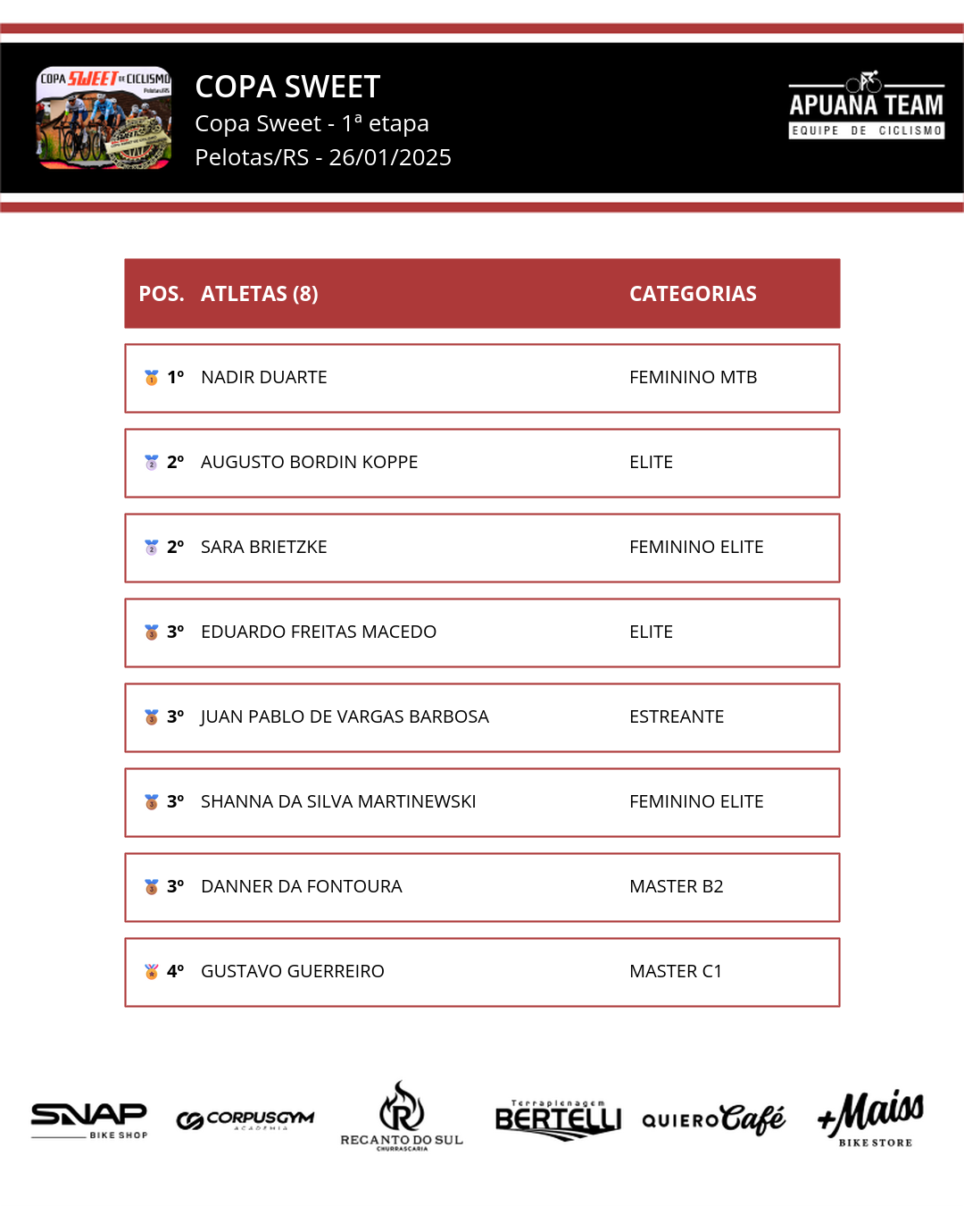 Resultados da Apuana Team: