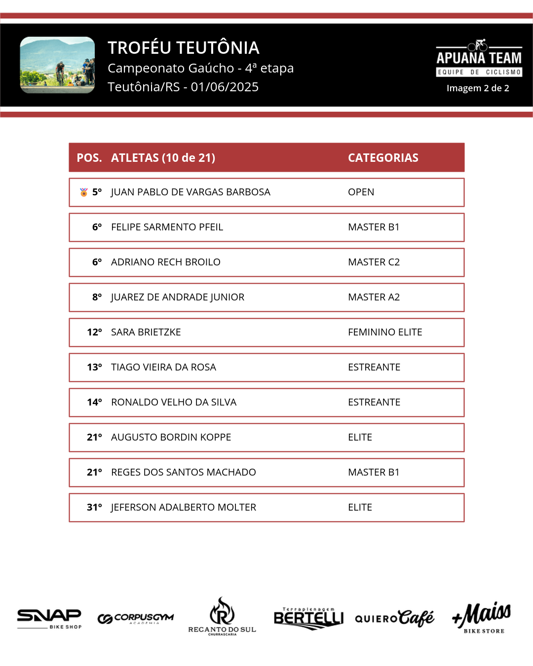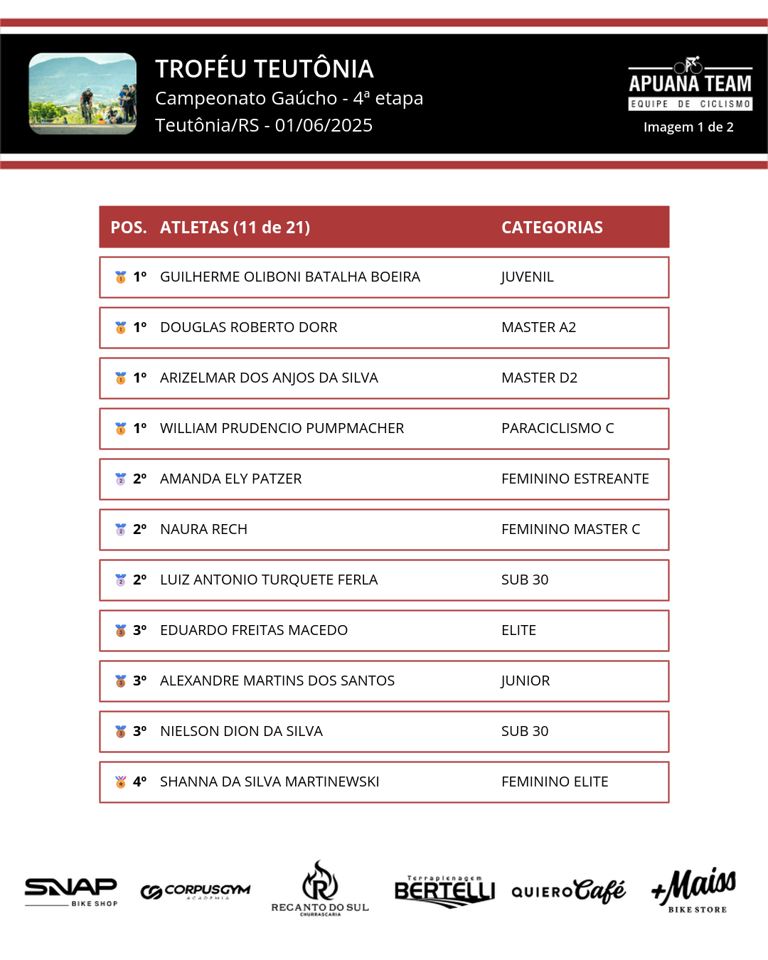 Resultados da Apuana Team: